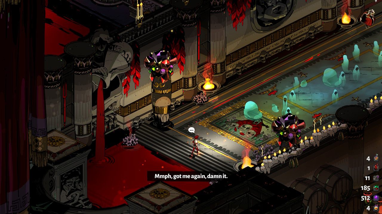 Since you’re repeatedly starting over, roguelikes often don’t have much of a story. Hades on the other hand, reveals the reason for Zagreus’ escape from the underworld patiently over many playthroughs. More impressive yet, it does so with a staggering amount of dialogue that never seems to repeat across dozens and dozens of runs. Learning more about the world and your favorite characters can be just as much as a reason to play as leveling up and beating your last run.